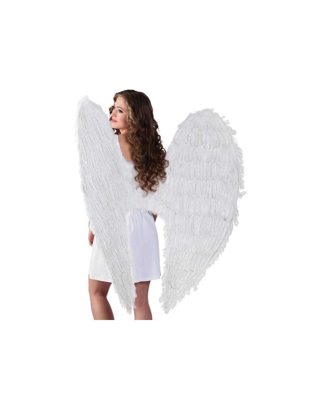Alas de ángel de plumas blancas (120 x 120 cm) Con correas elásticas para los brazos.