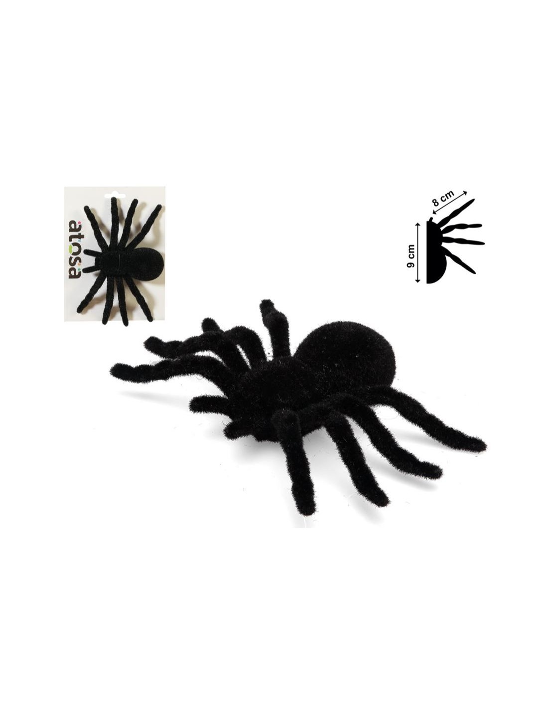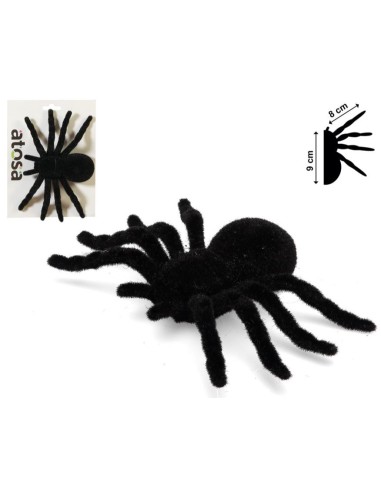 Araña decorativa en negro flocado, ideal para zonas oscuras o contrastes sobre fondo claro.