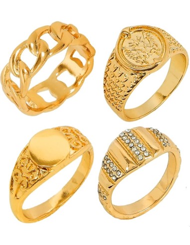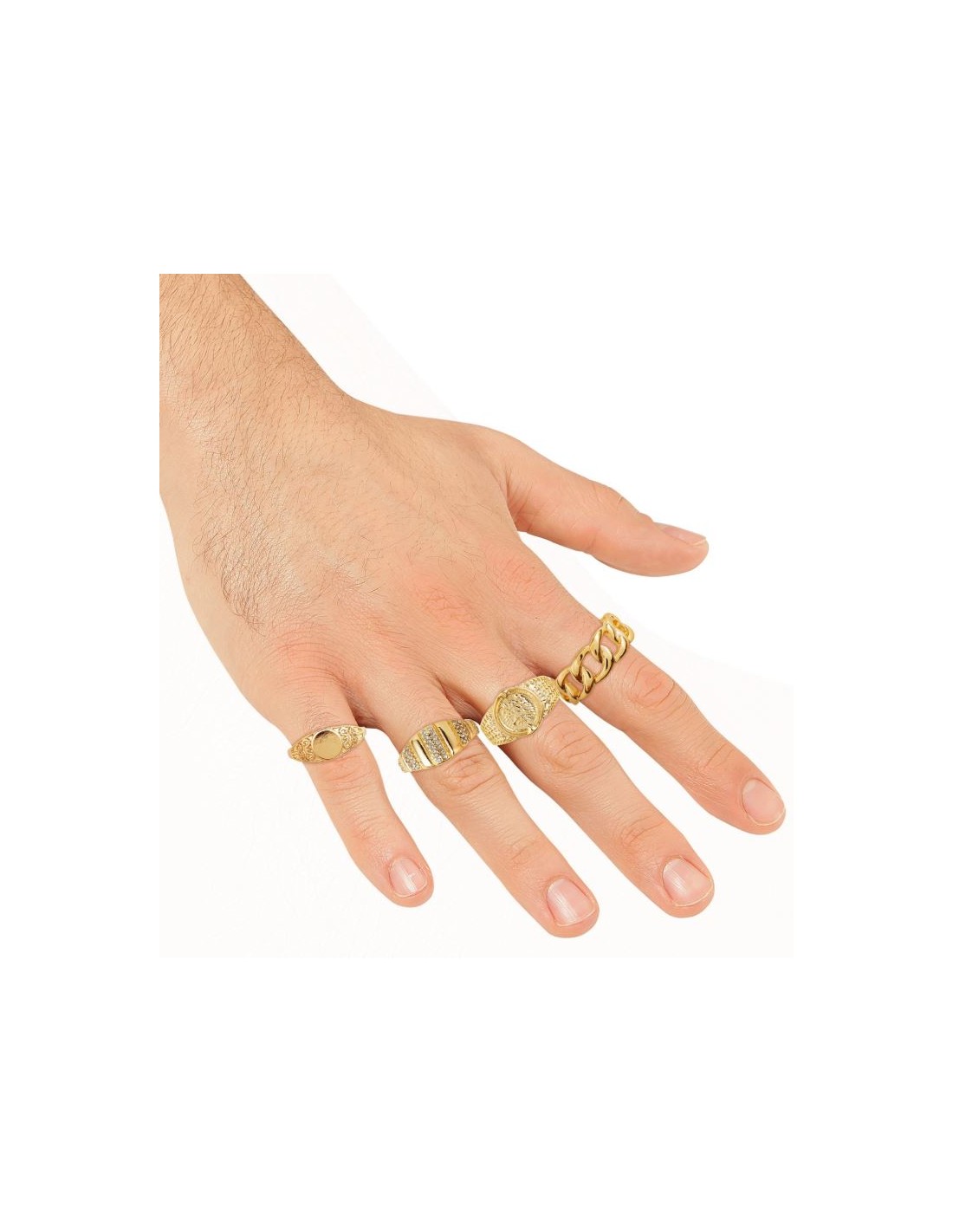 SET DE 4 ANILLOS DE ORO SURTIDOS, PARA ESTILOS RAPEROS