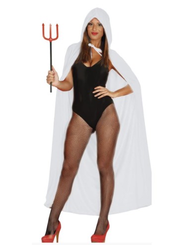 Capa larga con capucha negra ajustable con lazada. 100% poliéster. 140 cm de larga
