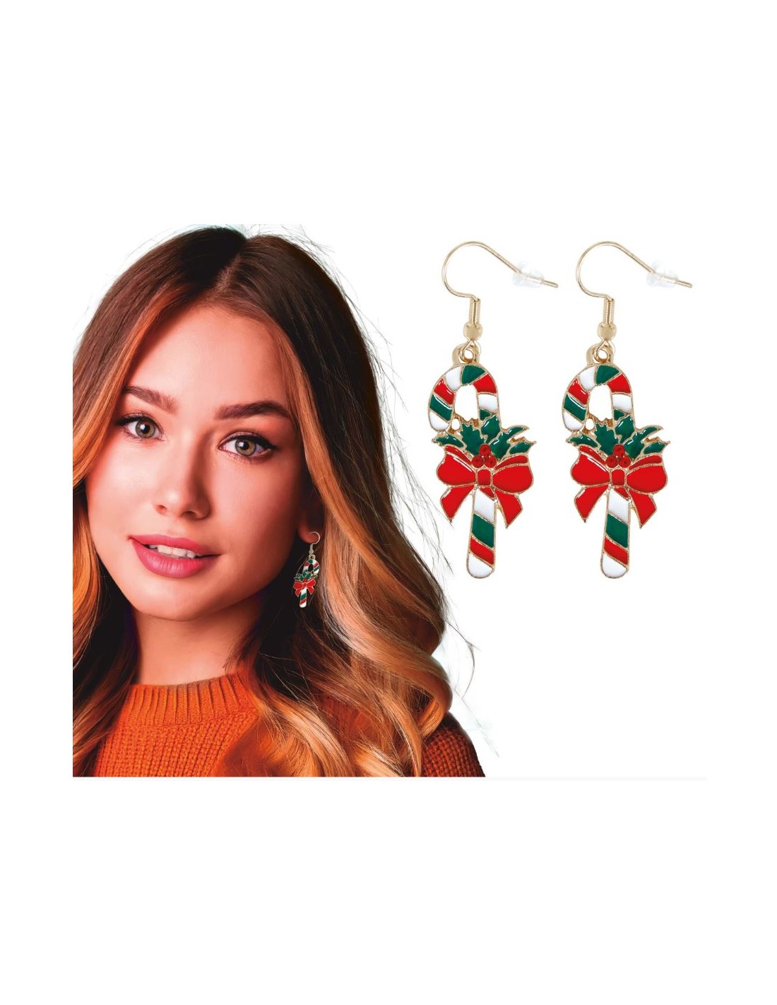 PENDIENTES METÁLICOS NAVIDEÑOS CON FORMA DE BASTÓN DE NAVIDAD