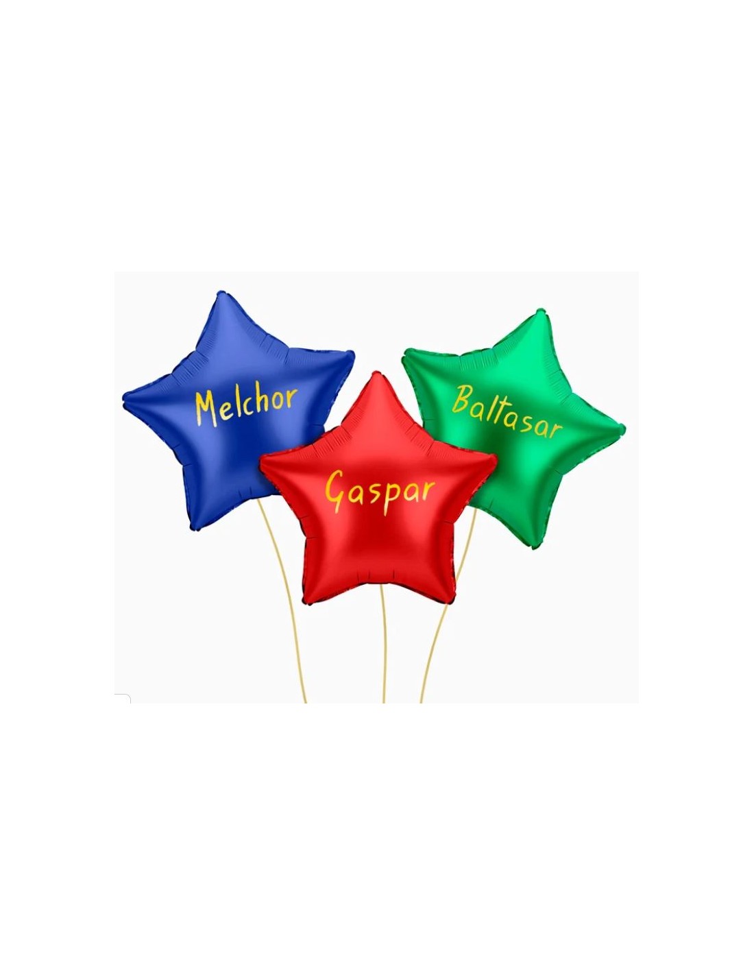 GLOBOS FOIL DE ESTRELLAS CON NOMBRE DE LOS REYES MAGOS