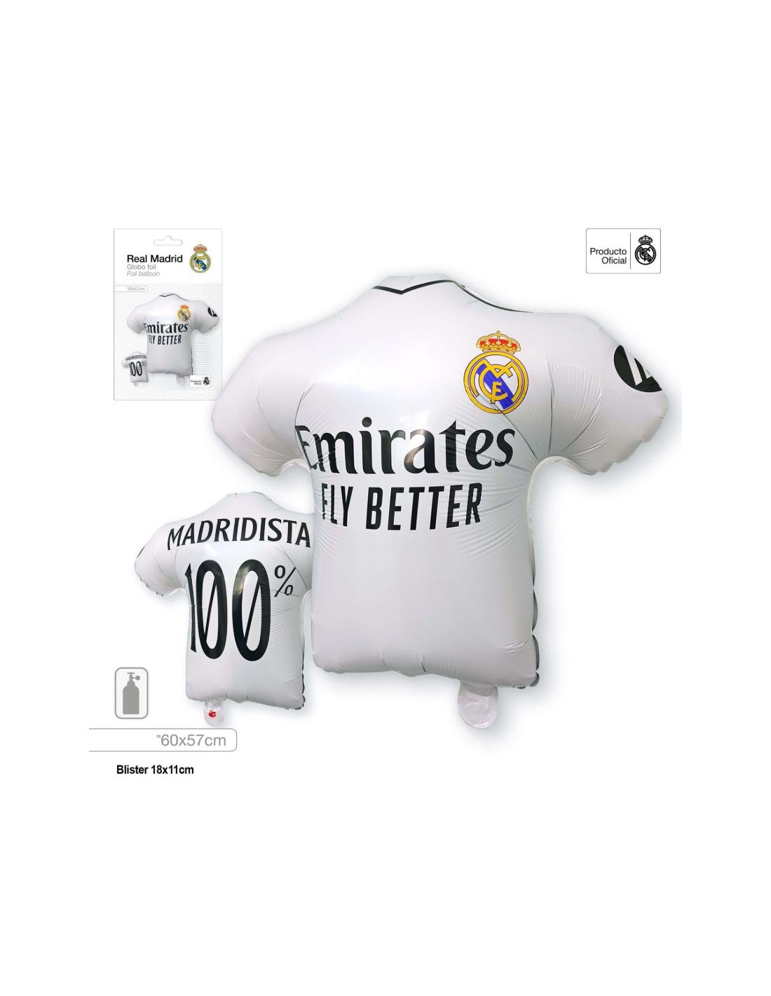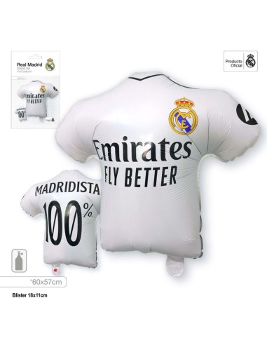 GLOBO FOIL CON FORMA DE CAMISETA DEL REAL MADRID, OFICIAL
