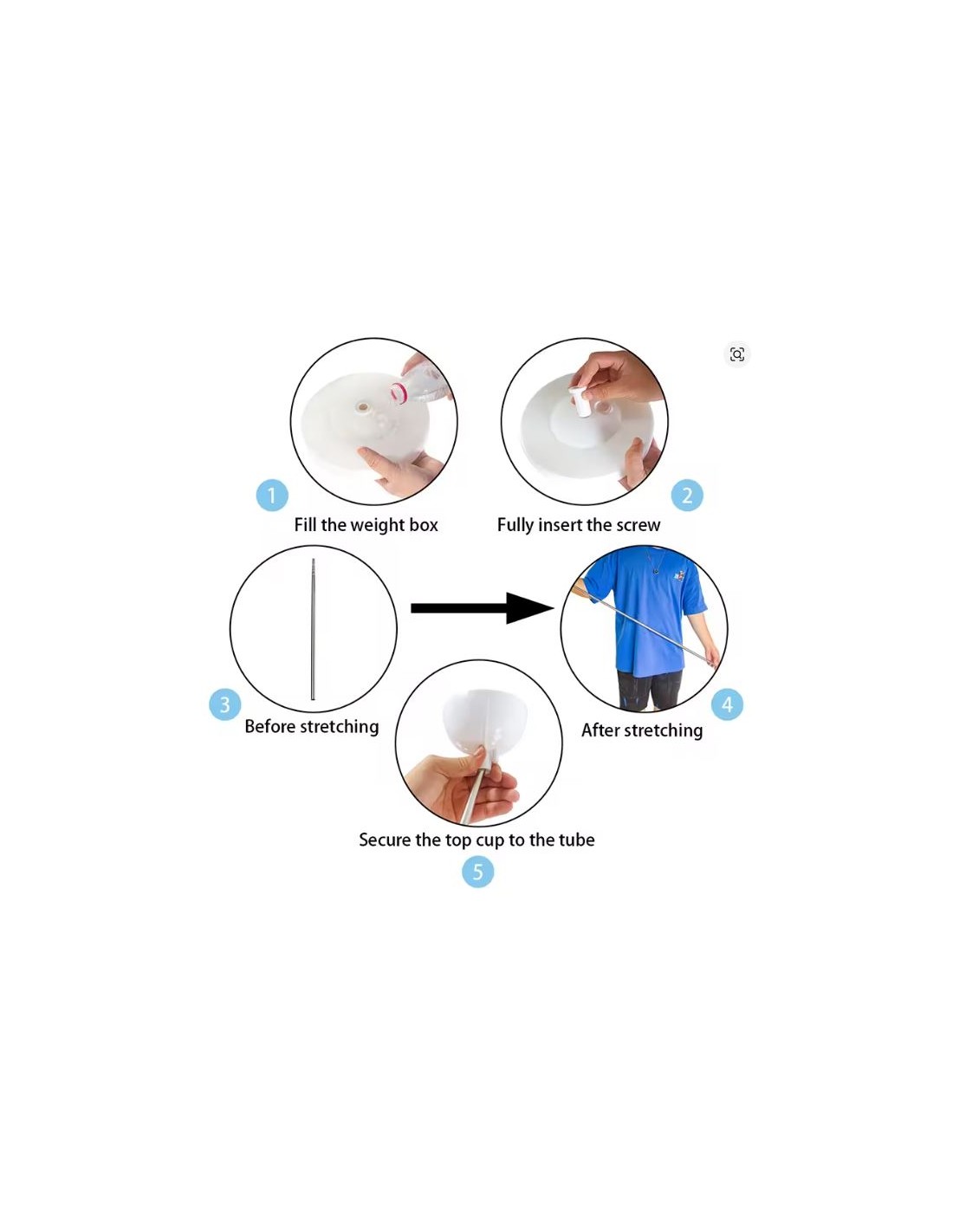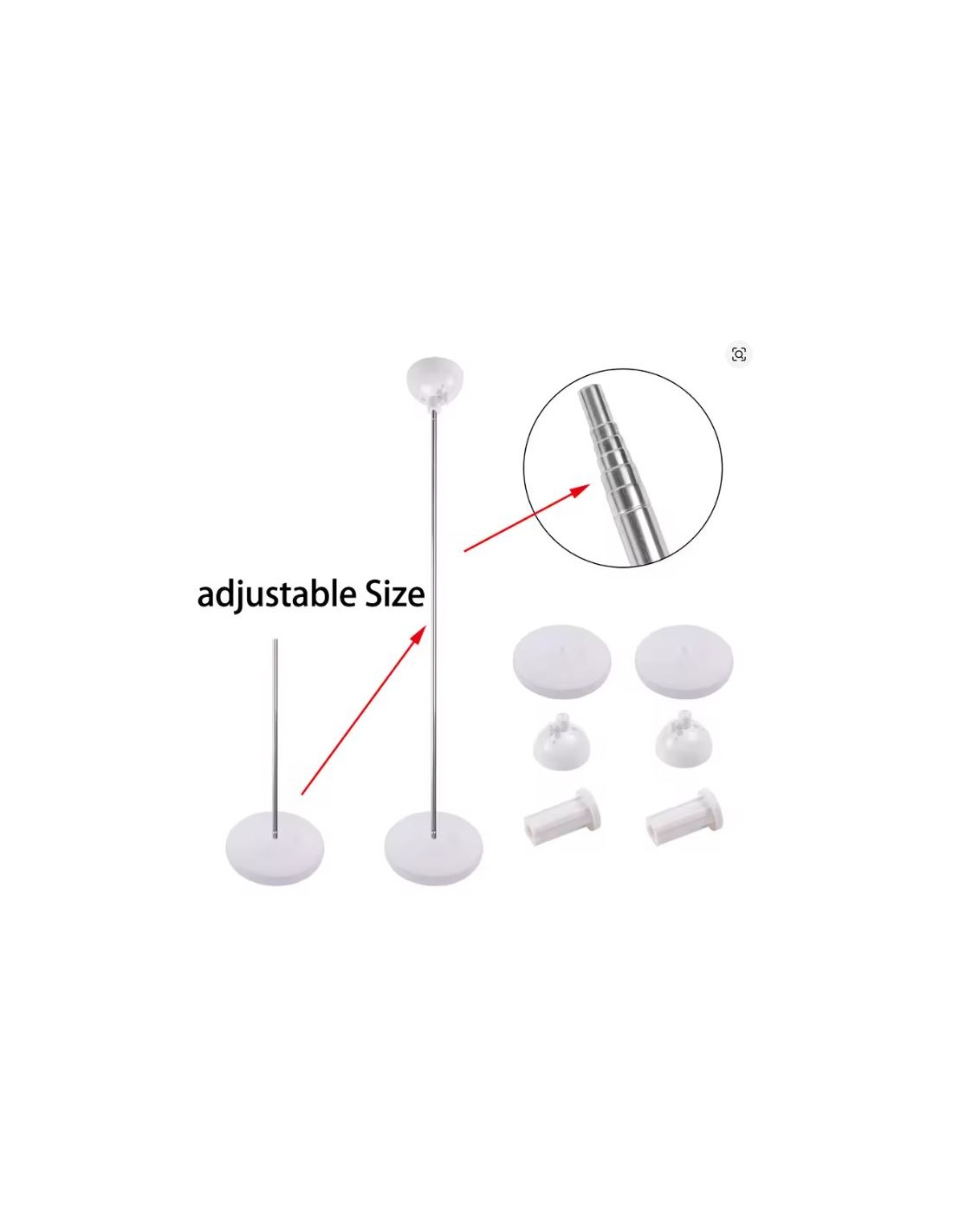 Soporte para globos con varilla metálica telescópica y accesorios como base y soporte de globo de plástico duro en color blanco