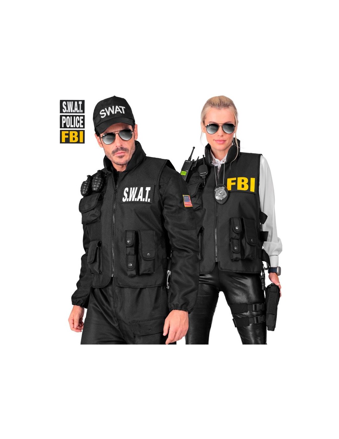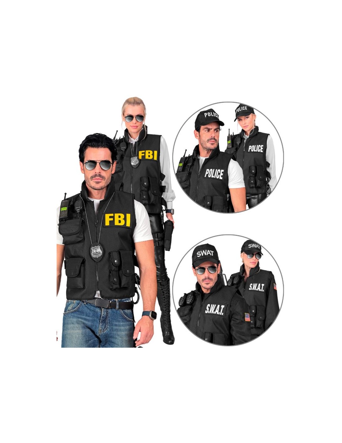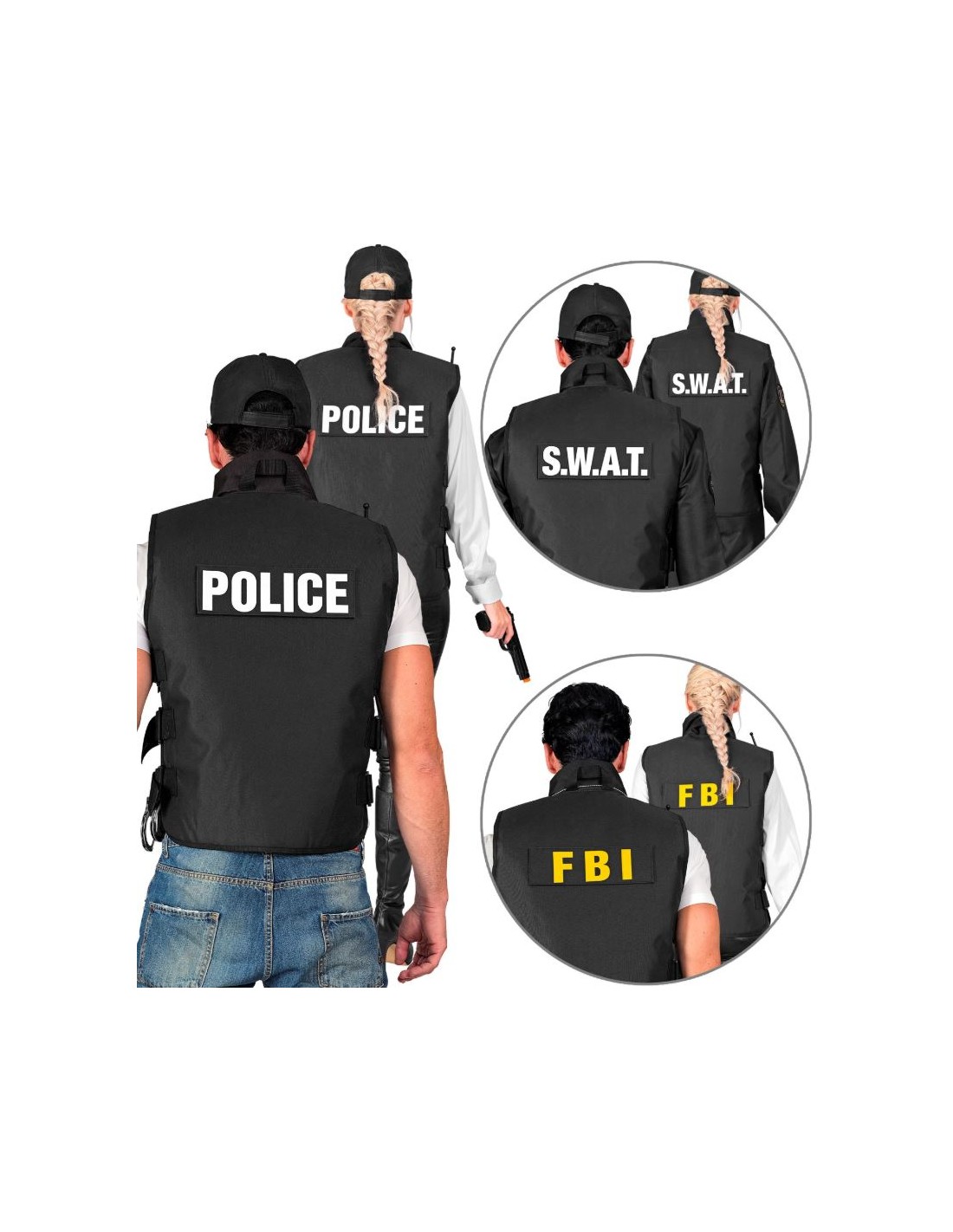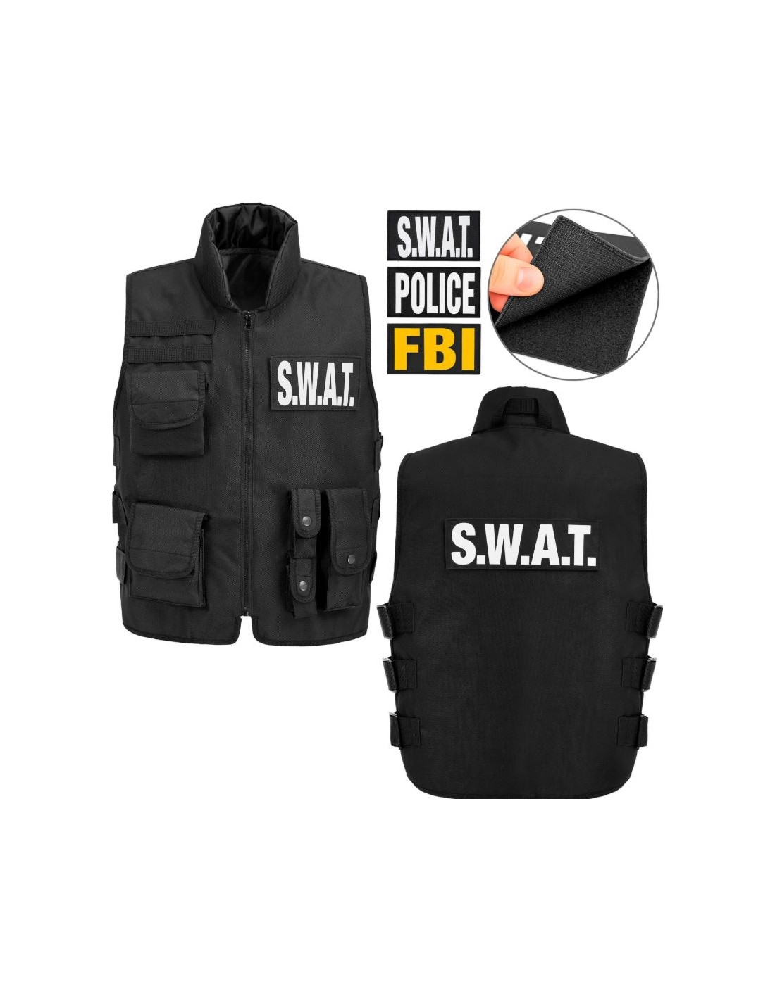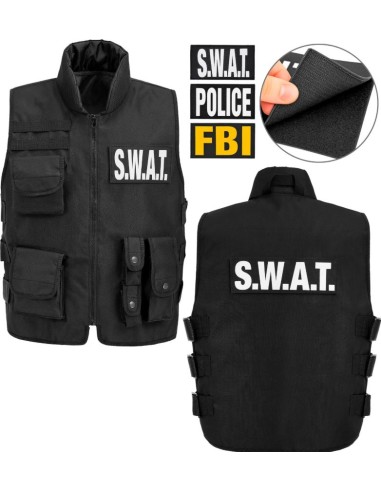 CHALECO TÁCTICO CON LAS 3 INSIGNIAS DEL (FBI/SWAT/ POLICÍA) EXTRAÍBLES