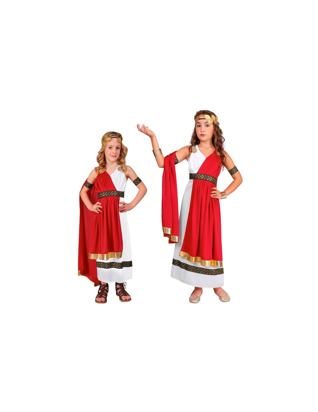 Incluye vestido con drapeado, brazalete y corona de laurel.