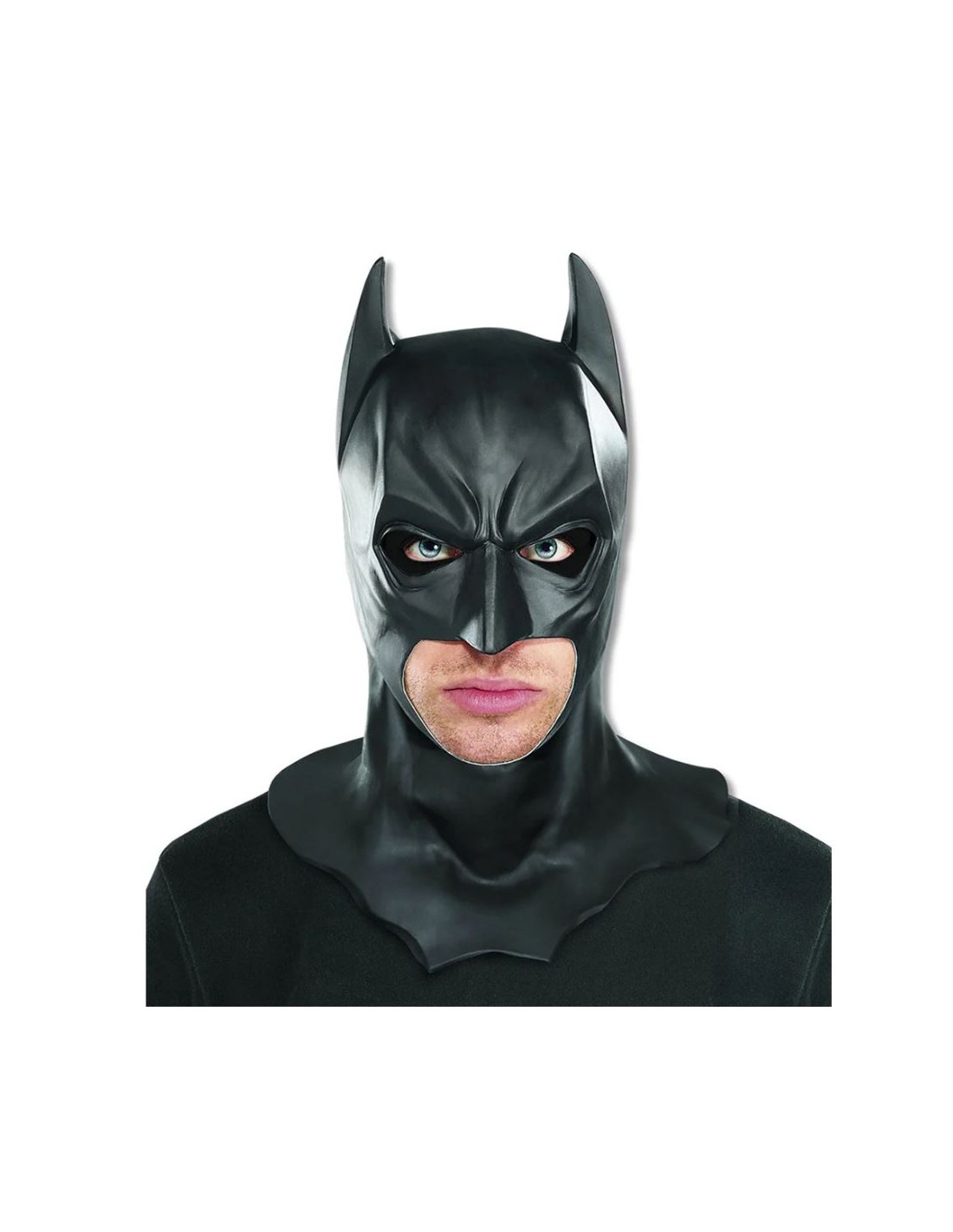 Máscara de cabeza entera de batman, de látex, abierta un poco por detrás para facilitar su puesta y se cierra con un velcro