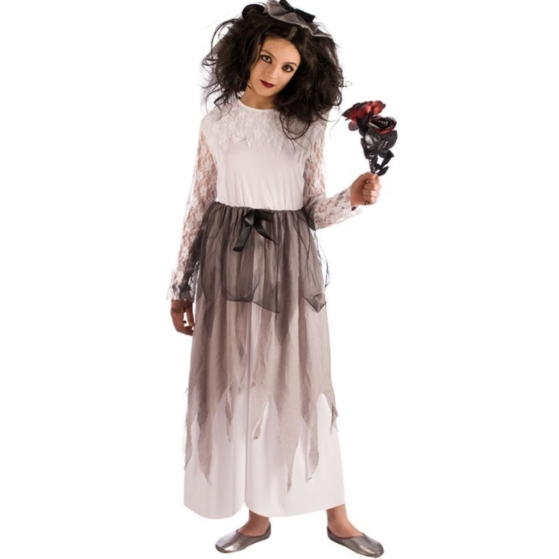 Disfraz de Novia Cadáver para niña. Contiene: Vestido y velo. No incluye ramo.